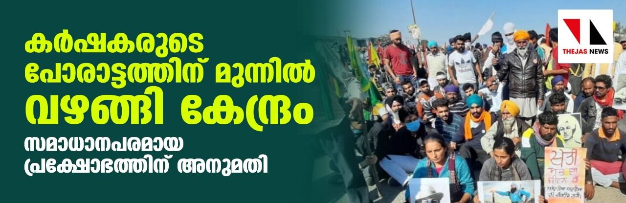കർഷകരുടെ പോരാട്ടത്തിന് മുന്നിൽ വഴങ്ങി കേന്ദ്രം; സമാധാനപരമായ പ്രക്ഷോഭത്തിന് അനുമതി