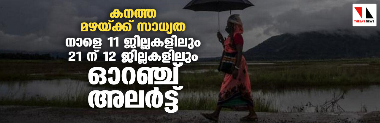 കനത്ത മഴയ്ക്ക് സാധ്യത; നാളെ 11 ജില്ലകളിലും 21 ന് 12 ജില്ലകളിലും ഓറഞ്ച് അലര്ട്ട്
