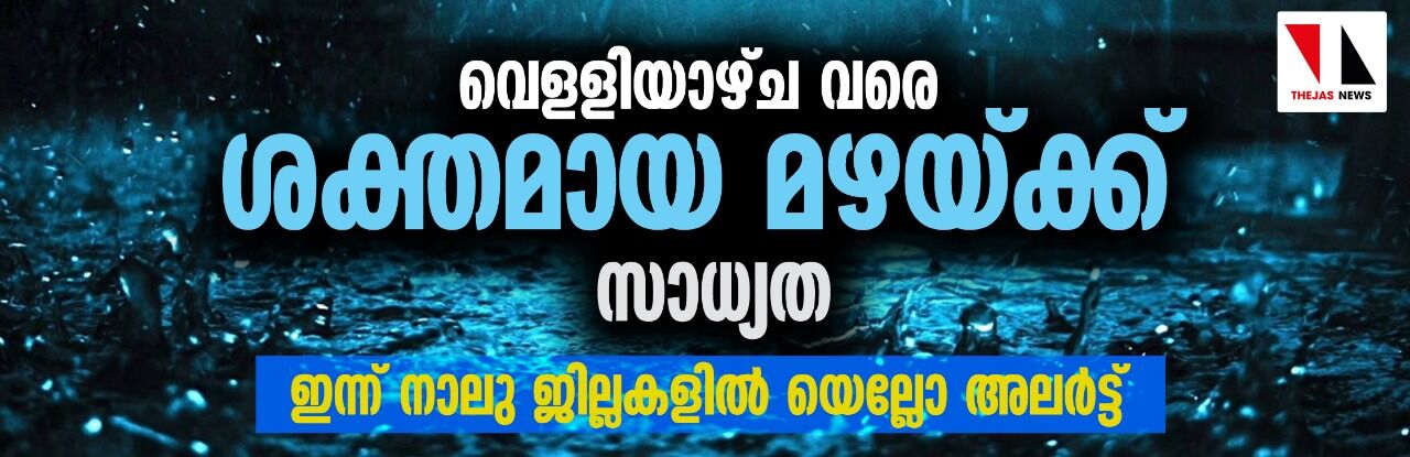 വെളളിയാഴ്ച വരെ ശക്തമായ മഴയ്ക്ക് സാധ്യത; ഇന്ന് നാലു ജില്ലകളില് യെല്ലോ അലര്ട്ട്