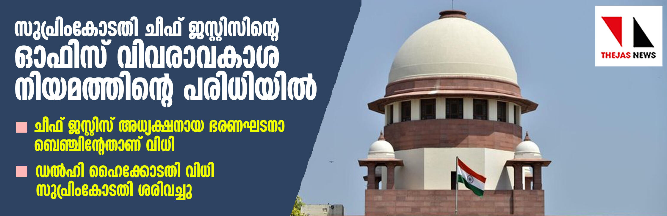 സുപ്രിംകോടതി ചീഫ് ജസ്റ്റിസിന്റെ ഓഫിസും വിവരാവകാശ നിയമത്തിന്റെ പരിധിയില്