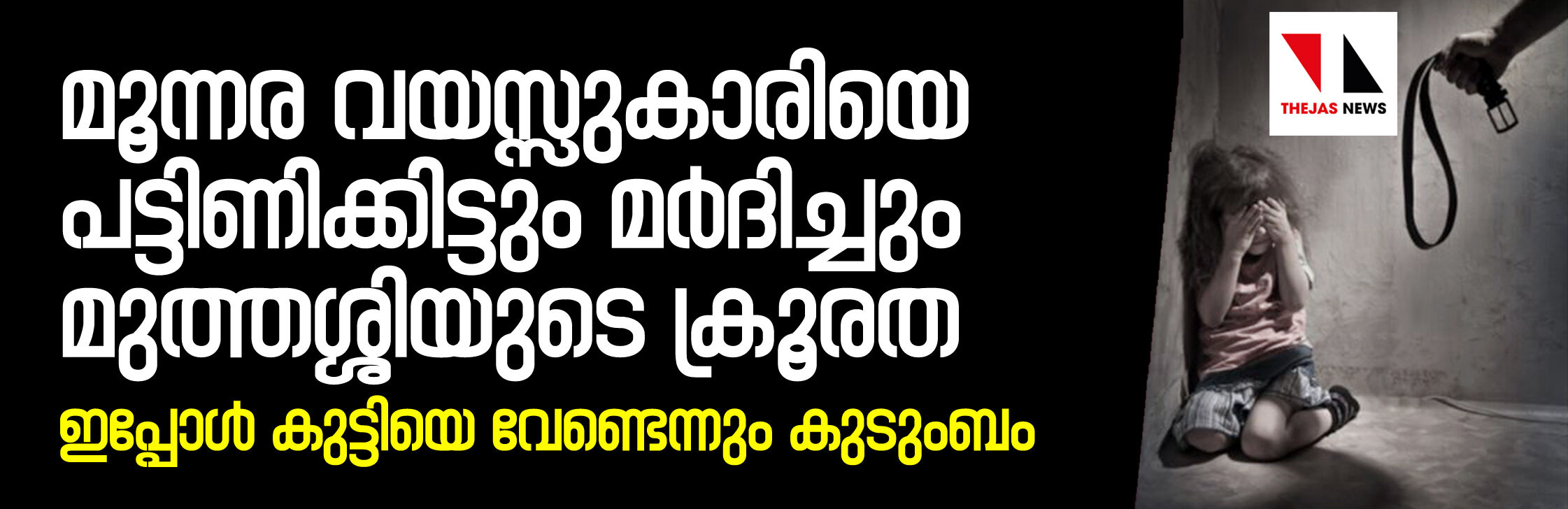 മൂന്നര വയസ്സുകാരിയെ പട്ടിണിക്കിട്ടും മര്ദിച്ചും മുത്തശ്ശിയുടെ ക്രൂരത; ഇപ്പോള് കുട്ടിയെ വേണ്ടെന്നും കുടുംബം