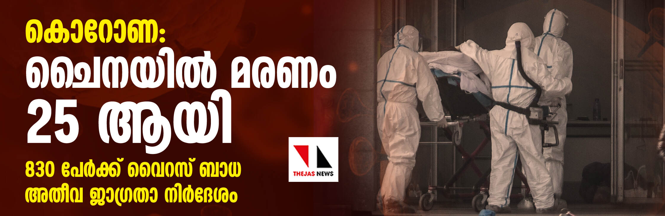 കൊറോണ: ചൈനയില് മരണം 25 ആയി, 830 പേര്ക്ക് വൈറസ് ബാധ; അതീവ ജാഗ്രതാ നിര്ദേശം