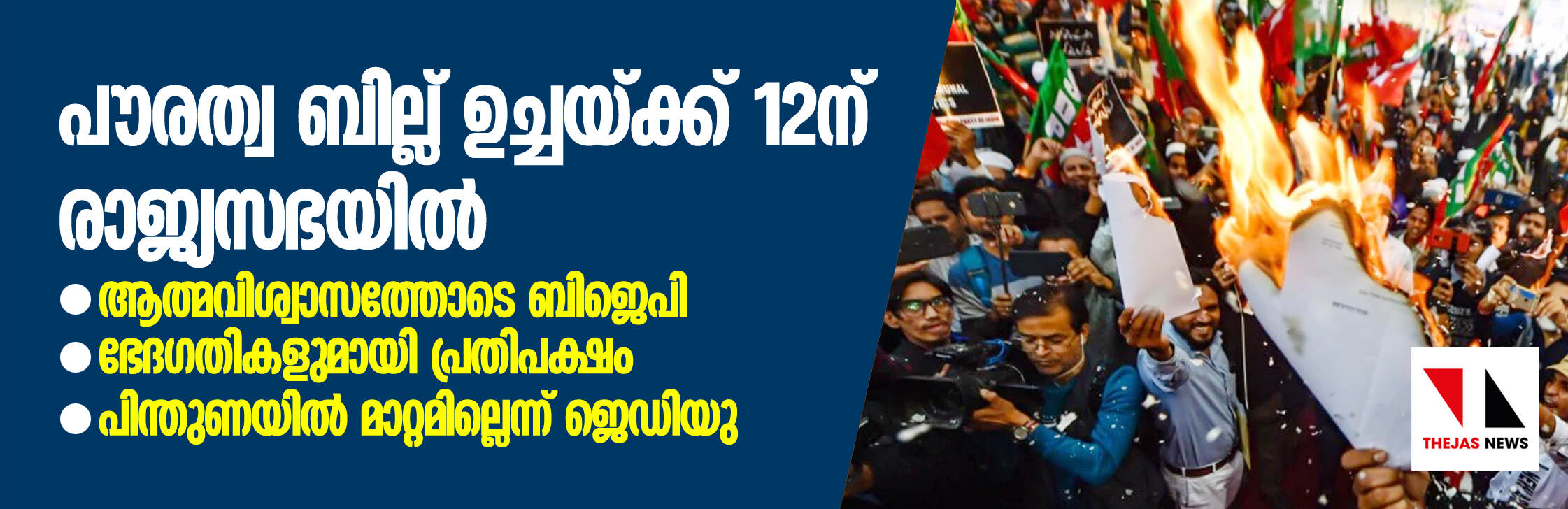 പൗരത്വ ബില് ഉച്ചയ്ക്ക് 12 ന് രാജ്യസഭയില്; ആത്മവിശ്വാസത്തോടെ ബിജെപി, ഭേദഗതികളുമായി പ്രതിപക്ഷം, പിന്തുണയില് മാറ്റമില്ലെന്ന് ജെഡിയു