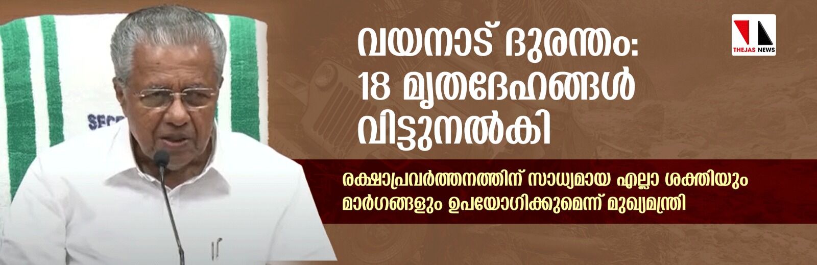 അപകടവിവരം അറിഞ്ഞയുടെനെ രക്ഷാ പ്രവര്ത്തനം ഏകോപിപ്പിക്കാന് ശ്രമിച്ചിരുന്നു. അഞ്ചു മന്ത്രിമാരെ വയനാട്ടിലെ പ്രവര്ത്തനങ്ങള്ക്ക് നേതൃത്വം നല്കാന് നിയോഗിച്ചിട്ടുണ്ട്. മന്ത്രിമാരുടെ നേരിട്ടുള്ള മേല്നോട്ടത്തില് സൈന്യത്തിന്റെ സഹായമുള്പ്പെടെയുള്ള ആവശ്യമായ സജ്ജീകരണങ്ങളോടേയും രക്ഷാപ്രവര്ത്തനം നടന്നുകൊണ്ടിരിക്കുകയാണ്. പരമാവധി ജീവനുകള് രക്ഷിക്കാനും പരിക്കേറ്റവര്ക്ക് മികച്ച ചികില്സയൊരുക്കാനും മറ്റുള്ളവരെ സുരക്ഷിത സ്ഥാനങ്ങളിലേയ്ക്ക് മാറ്റാനുമാണ് ശ്രമിക്കുന്നത്.