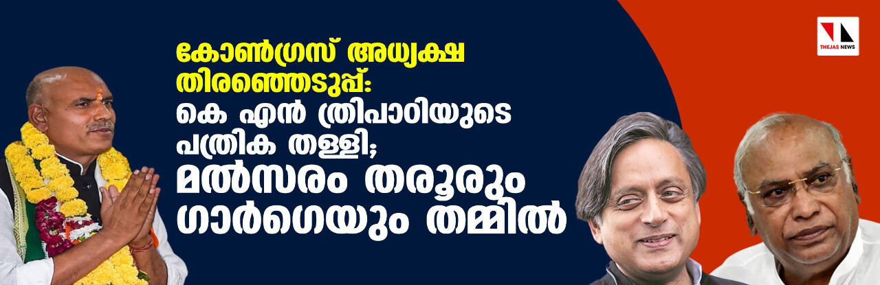 കോണ്ഗ്രസ് അധ്യക്ഷ തിരഞ്ഞെടുപ്പ്: കെ എന് ത്രിപാഠിയുടെ പത്രിക തള്ളി; മല്സരം തരൂരും ഗാര്ഗെയും തമ്മില്