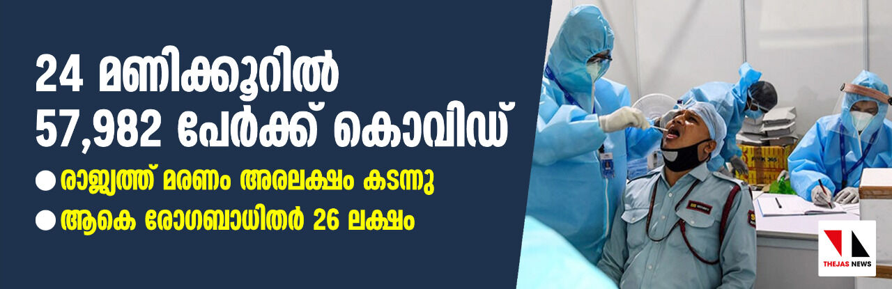 24 മണിക്കൂറില് 57,982 പേര്ക്ക് കൊവിഡ്; രാജ്യത്ത് മരണം അരലക്ഷം കടന്നു; ആകെ രോഗബാധിതര് 26 ലക്ഷം