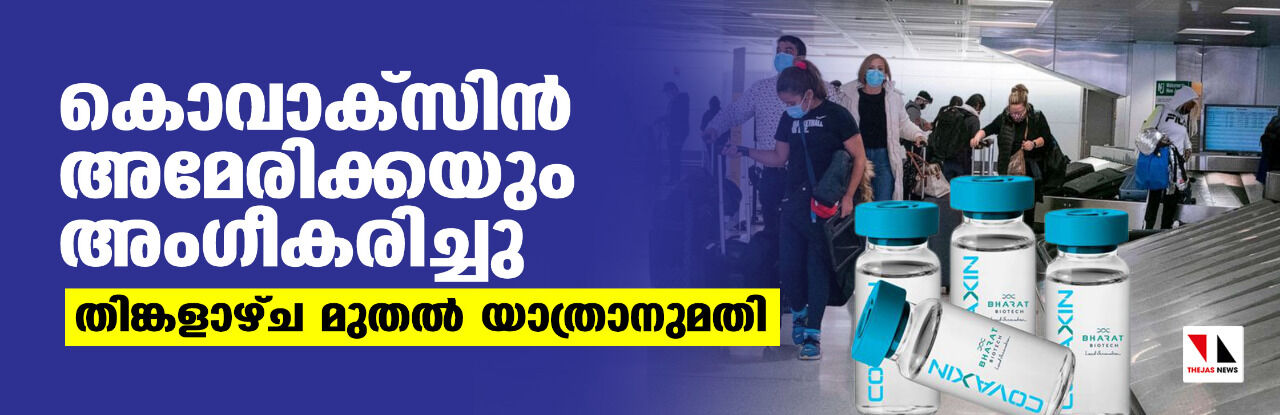 കൊവാക്സിന് അമേരിക്കയും അംഗീകരിച്ചു; തിങ്കളാഴ്ച മുതല് യാത്രാനുമതി