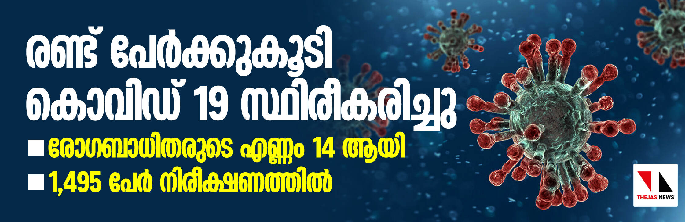 രണ്ട് പേര്ക്കുകൂടി കൊവിഡ് 19 സ്ഥിരീകരിച്ചു; രോഗബാധിതരുടെ എണ്ണം 14 ആയി