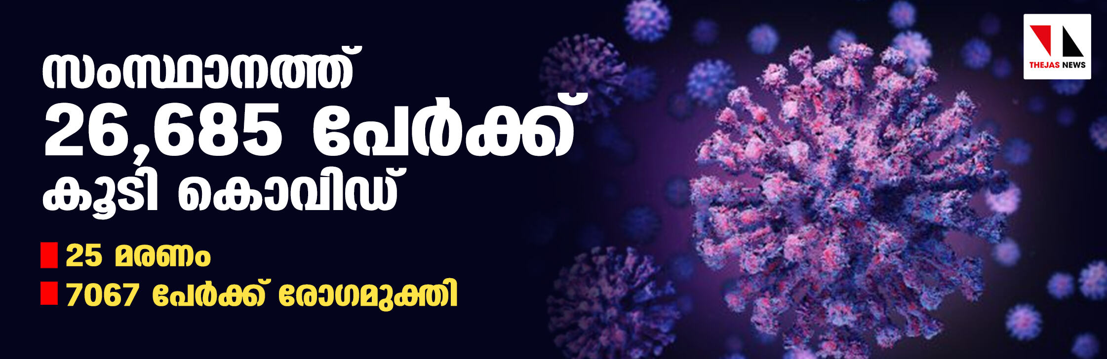 സംസ്ഥാനത്ത് ഇന്ന് 26,685 പേര്ക്ക് കൊവിഡ്-19 സ്ഥിരീകരിച്ചു; ആകെ മരണം 5080 ആയി