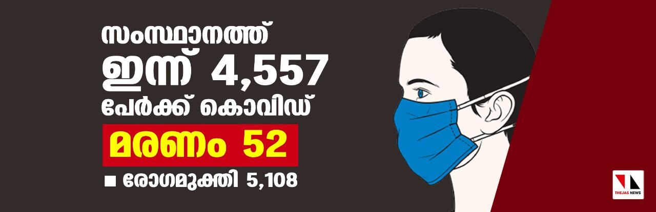 സംസ്ഥാനത്ത് ഇന്ന് 4557 പേര്ക്ക് കൊവിഡ് സ്ഥിരീകരിച്ചു; ആകെ മരണം 41,439