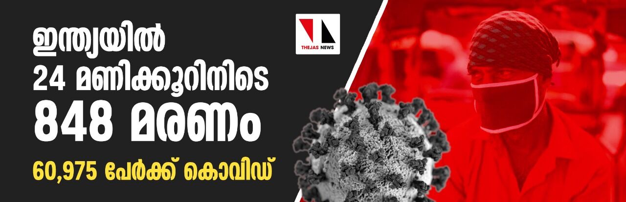 ഇന്ത്യയില് 24 മണിക്കൂറിനിടെ 848 മരണം; 60,975 പേര്ക്ക് കൊവിഡ്