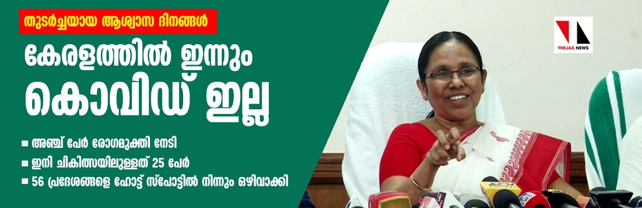 തുടര്ച്ചയായ ആശ്വാസ ദിനങ്ങള്; ഇന്നും ആര്ക്കും കൊവിഡ് സ്ഥിരീകരിച്ചില്ല -56 പ്രദേശങ്ങളെ ഹോട്ട് സ്പോട്ടില് നിന്നും ഒഴിവാക്കി