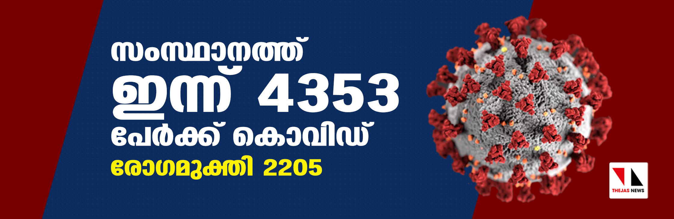 സംസ്ഥാനത്ത് ഇന്ന് 4353 പേര്ക്ക് കൊവിഡ് 19 സ്ഥിരീകരിച്ചു