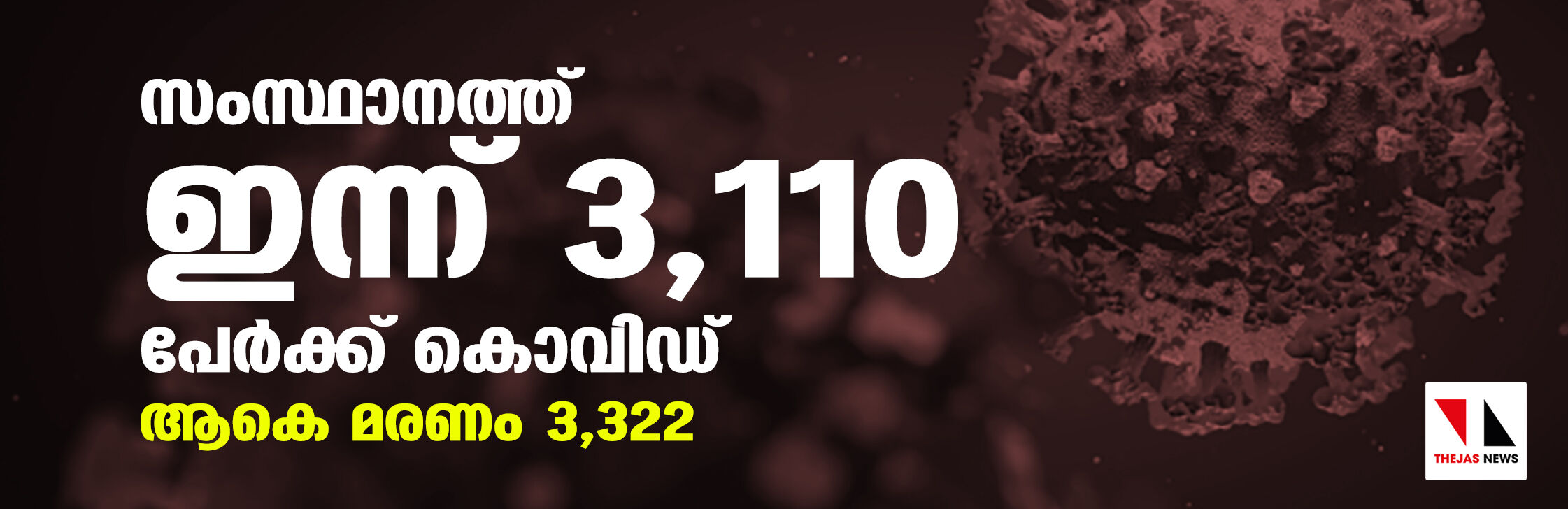 സംസ്ഥാനത്ത് ഇന്ന് 3110 പേര്ക്ക് കൊവിഡ്; ആകെ മരണം 3322
