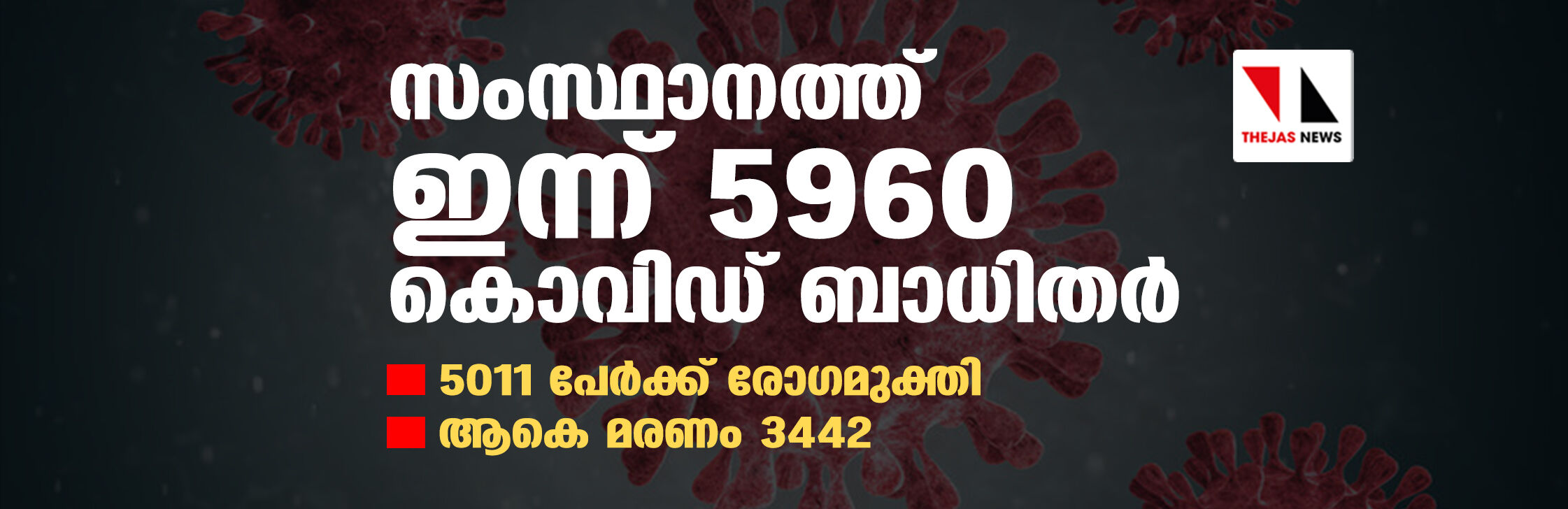 സംസ്ഥാനത്ത് ഇന്ന് 5960 പേര്ക്ക് കൊവിഡ്; ആകെ മരണം 3442 ആയി