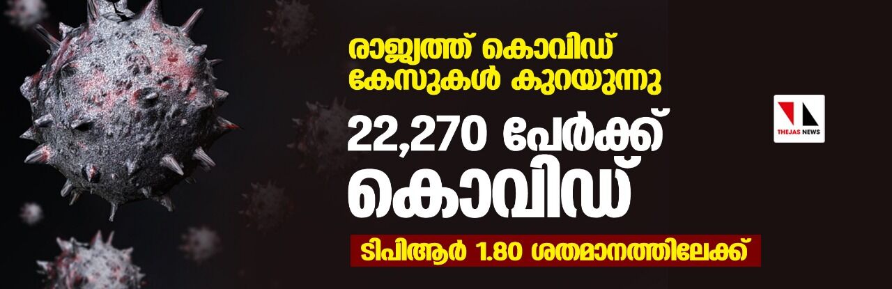 രാജ്യത്ത് കൊവിഡ് കേസുകള് കുറയുന്നു;22,270 പേര്ക്ക് കൊവിഡ്,ടിപിആര് 1.80 ശതമാനത്തിലേക്ക്