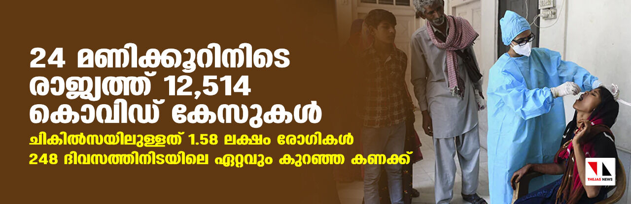 24 മണിക്കൂറിനിടെ രാജ്യത്ത് 12,514 കൊവിഡ് കേസുകള്; ചികില്സയിലുള്ളത് 1.58 ലക്ഷം രോഗികള്, 248 ദിവസത്തിനിടയിലെ ഏറ്റവും കുറഞ്ഞ കണക്ക്