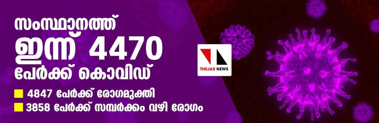 സംസ്ഥാനത്ത് ഇന്ന് 4470 പേര്ക്ക് കൊവിഡ്; 4847 പേര്ക്ക് രോഗമുക്തി;ടെസ്റ്റ് പോസിറ്റിവിറ്റി നിരക്ക് 8.47