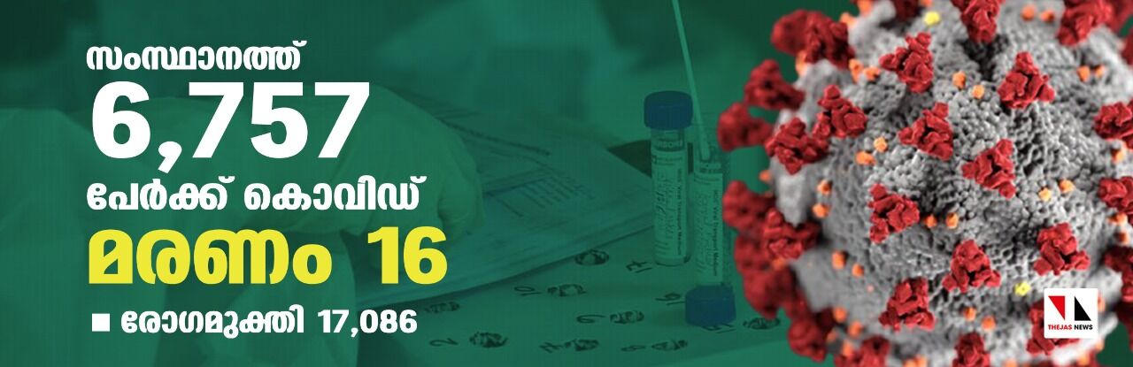 സംസ്ഥാനത്ത് ഇന്ന് 6,757 പേര്ക്ക് കൊവിഡ്; 16 മരണം