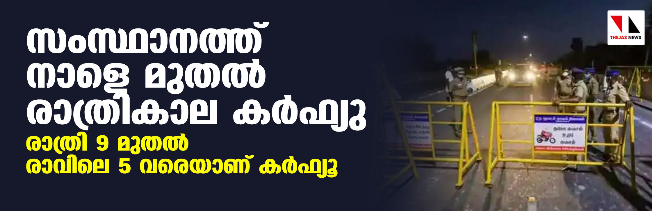 സംസ്ഥാനത്ത് നാളെ മുതല് രാത്രികാല കര്ഫ്യൂ; രാത്രി 9 മുതല് രാവിലെ അഞ്ച് വരെയാണ് കര്ഫ്യൂ