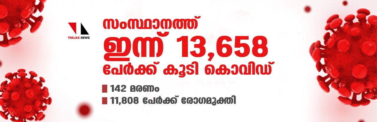സംസ്ഥാനത്ത് ഇന്ന് 13,658 പേര്ക്ക് കൊവിഡ്; ടെസ്റ്റ് പോസിറ്റിവിറ്റി നിരക്ക് 9.71; മരണം 142