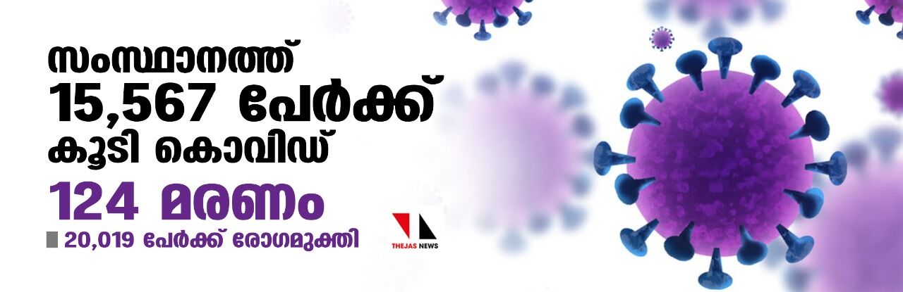 സംസ്ഥാനത്ത് ഇന്ന് 15,567 പേര്ക്ക് കൊവിഡ്; മരണം 124