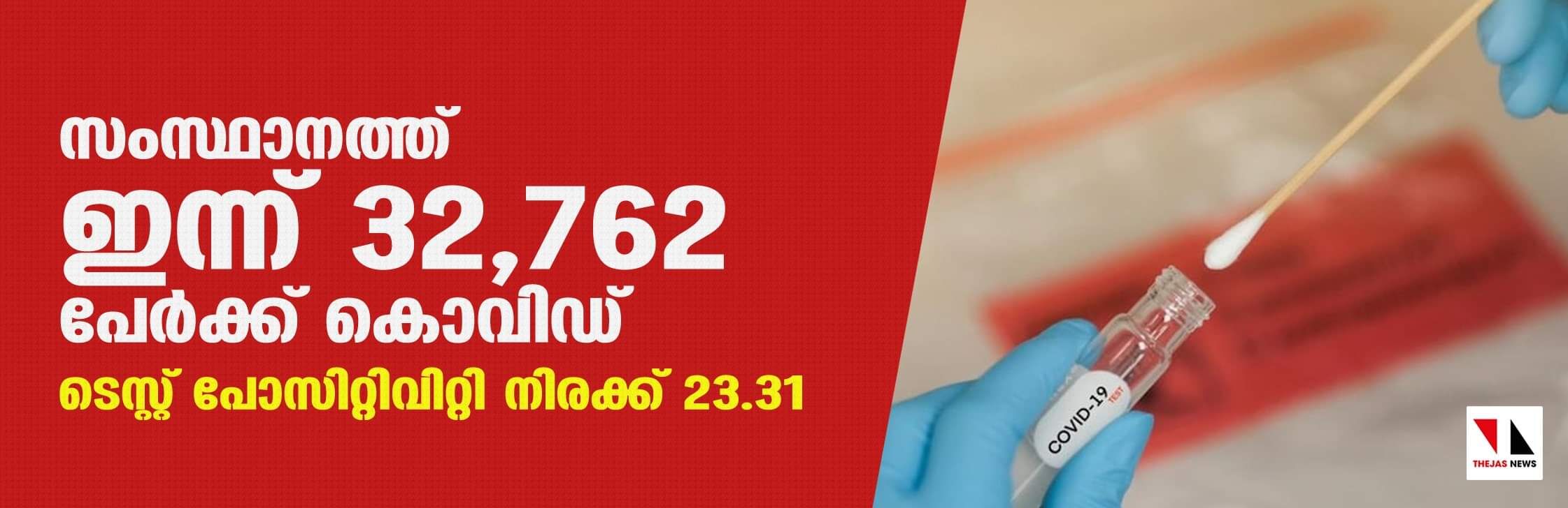 സംസ്ഥാനത്ത് ഇന്ന് 32,762 പേര്ക്ക് കൊവിഡ്; ടെസ്റ്റ് പോസിറ്റിവിറ്റി നിരക്ക് 23.31