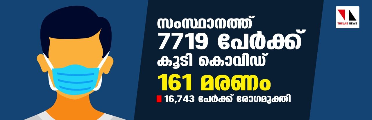 സംസ്ഥാനത്ത് ഇന്ന് 7719 പേര്ക്ക് കൊവിഡ്; ടെസ്റ്റ് പോസിറ്റിവിറ്റി 11.26; മരണം 161