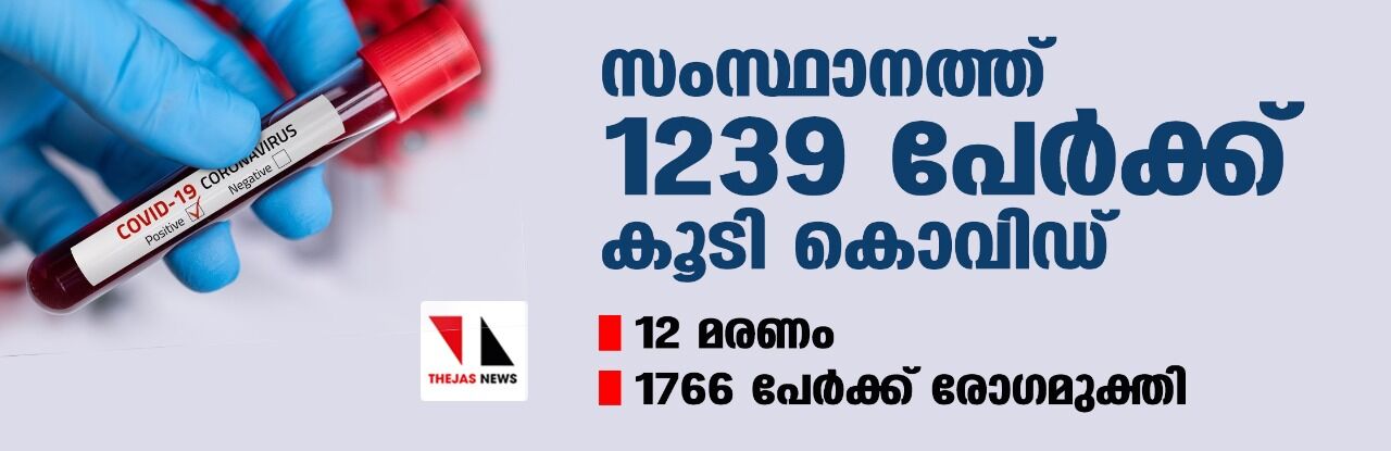 സംസ്ഥാനത്ത് ഇന്ന് 1239 പേര്ക്ക് കൊവിഡ്; 1766 പേര്ക്ക് രോഗമുക്തി, 12 മരണം