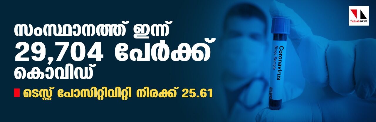 സംസ്ഥാനത്ത് ഇന്ന് 29,704 പേര്ക്ക് കൊവിഡ്; രോഗമുക്തി 34,296 പേര്ക്ക്