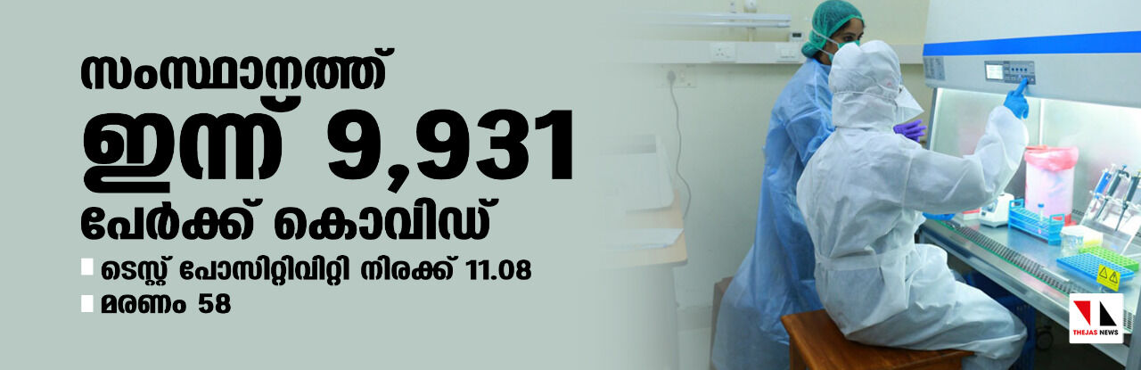 സംസ്ഥാനത്ത് ഇന്ന് 9,931 പേര്ക്ക് കൊവിഡ്; ടെസ്റ്റ് പോസിറ്റിവിറ്റി നിരക്ക് 11.08 ശതമാനം