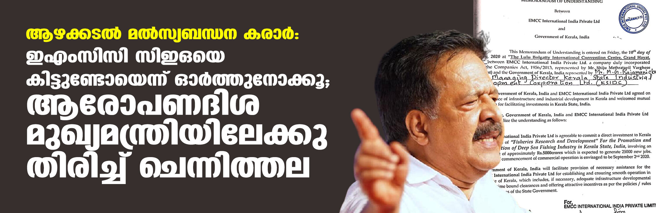 ആഴക്കടല് മല്സ്യബന്ധന കരാര്: ഇഎംസിസി സിഇഒയെ കണ്ടിട്ടുണ്ടോയെന്ന് ഓര്ത്തുനോക്കൂ; ആരോപണദിശ മുഖ്യമന്ത്രിയിലേക്കു തിരിച്ച് ചെന്നിത്തല