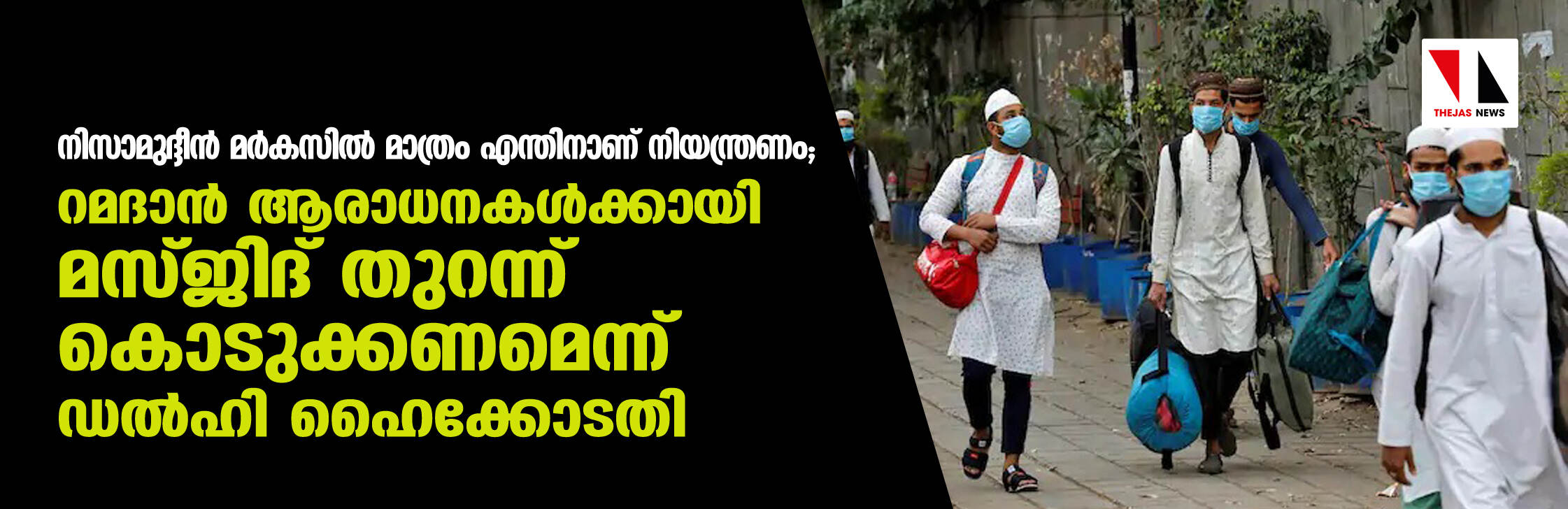 നിസാമുദ്ദീന് മര്കസില് മാത്രം എന്തിനാണ് നിയന്ത്രണം; റമദാന് ആരാധനകള്ക്കായി മസ്ജിദ് തുറന്ന് കൊടുക്കണമെന്ന് ഡല്ഹി ഹൈക്കോടതി