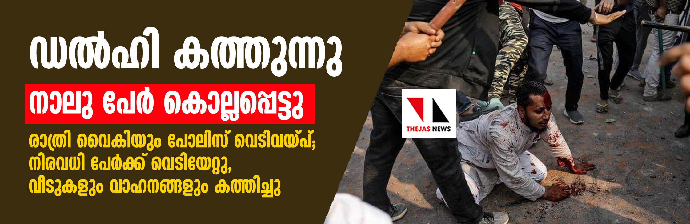 ഡല്ഹി കത്തുന്നു; നാലു പേര് കൊല്ലപ്പെട്ടു, രാത്രി വൈകിയും പോലിസ് വെടിവയ്പ്; നിരവധി പേര്ക്ക് വെടിയേറ്റു, വീടുകളും വാഹനങ്ങളും കത്തിച്ചു
