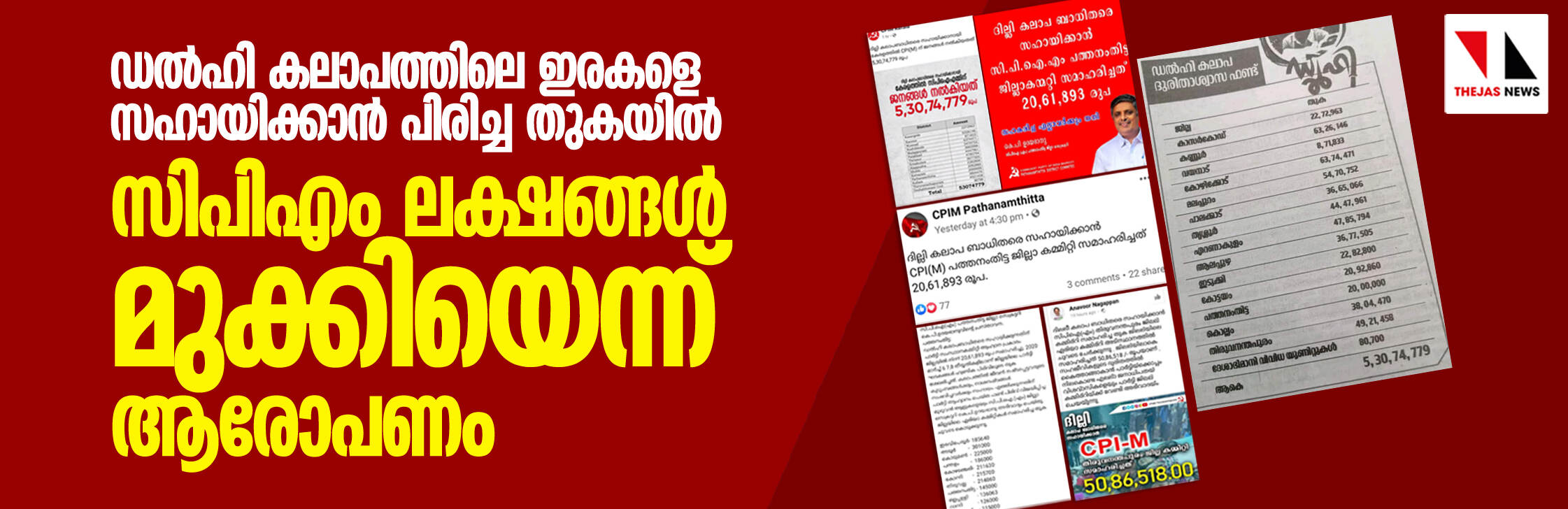ഡല്ഹി കലാപത്തിലെ ഇരകളെ സഹായിക്കാന് പിരിച്ച തുകയില് സിപിഎം ലക്ഷങ്ങള് മുക്കിയെന്ന് ആരോപണം