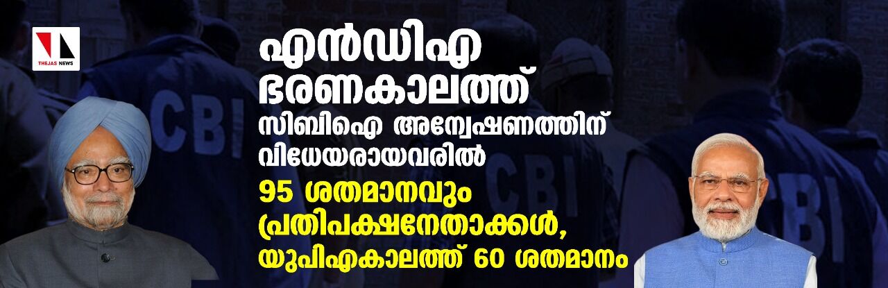 എന്ഡിഎ ഭരണകാലത്ത് സിബിഐ അന്വേഷണത്തിന് വിധേയരായവരില് 95 ശതമാനവും പ്രതിപക്ഷനേതാക്കള്, യുപിഎകാലത്ത് 60 ശതമാനം