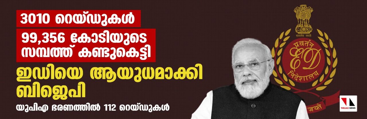 3010 റെയ്ഡുകള്, 99356 കോടിയുടെ സമ്പത്ത് കണ്ടുകെട്ടി; ഇഡിയെ ആയുധമാക്കി ബിജെപി
