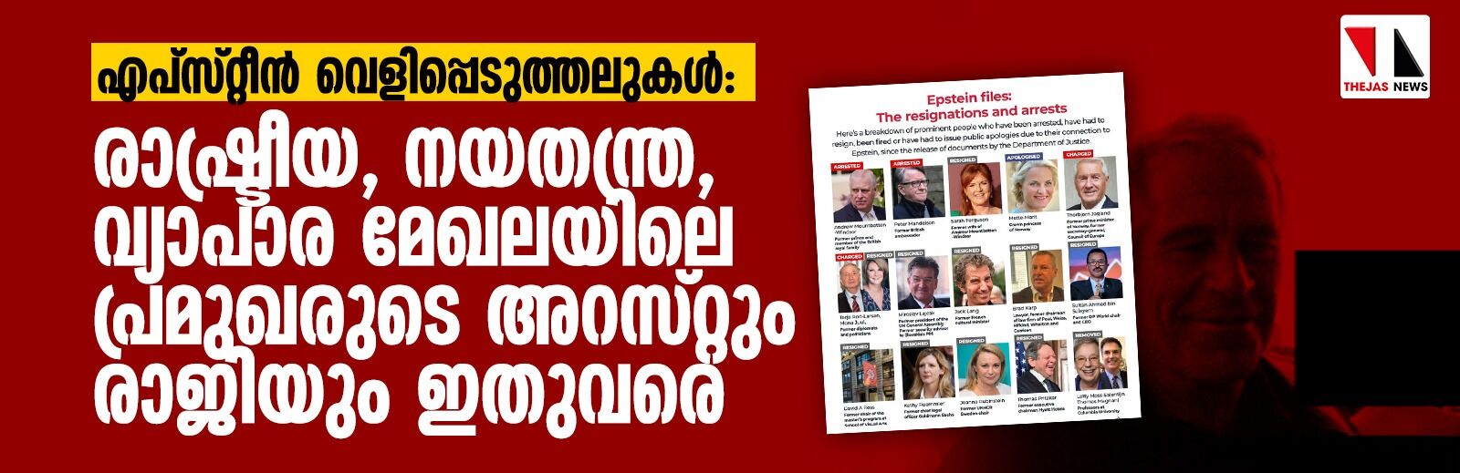 എപ്സ്റ്റീന് വെളിപ്പെടുത്തലുകള്: രാഷ്ട്രീയ, നയതന്ത്ര, വ്യാപാര മേഖലയിലെ പ്രമുഖരുടെ അറസ്റ്റും രാജിയും ഇതുവരെ