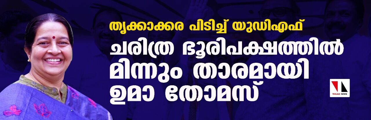 25,016 വോട്ടുകളുടെ ഭുരിപക്ഷത്തിലാണ് യുഡിഎഫ് സ്ഥാനാര്ഥിയും അന്തരിച്ച പി ടി തോമസിന്റെ ഭാര്യയുമായ ഉമാ തോമസ് എല്ഡിഎഫ് സ്ഥാനാര്ഥി ഡോ.ജോ ജോസഫിനെ പരാജയപ്പെടുത്തിയത്.തൃക്കാക്കര മണ്ഡലം രൂപീകൃതമായതിനു ശേഷമുള്ള ഏറ്റവും വലിയ ഭൂരിപക്ഷത്തിന്റെ അകമ്പടിയോടെയാണ് ഉമാ തോമസ് നിയമസഭയുടെ പടി കയറുന്നത്