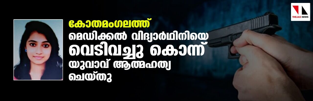 കോതമംഗലത്ത് മെഡിക്കല് വിദ്യാര്ഥിനിയെ വെടിവച്ചു കൊന്ന് യുവാവ് ആത്മഹത്യ ചെയ്തു