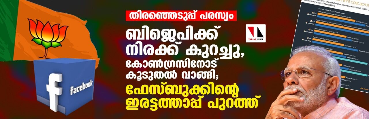 തിരഞ്ഞെടുപ്പ് പരസ്യം: ബിജെപിക്ക് നിരക്ക് കുറച്ചു, കോണ്ഗ്രസിനോട് കൂടുതല് വാങ്ങി; ഫേസ്ബുക്കിന്റെ ഇരട്ടത്താപ്പ് പുറത്ത്