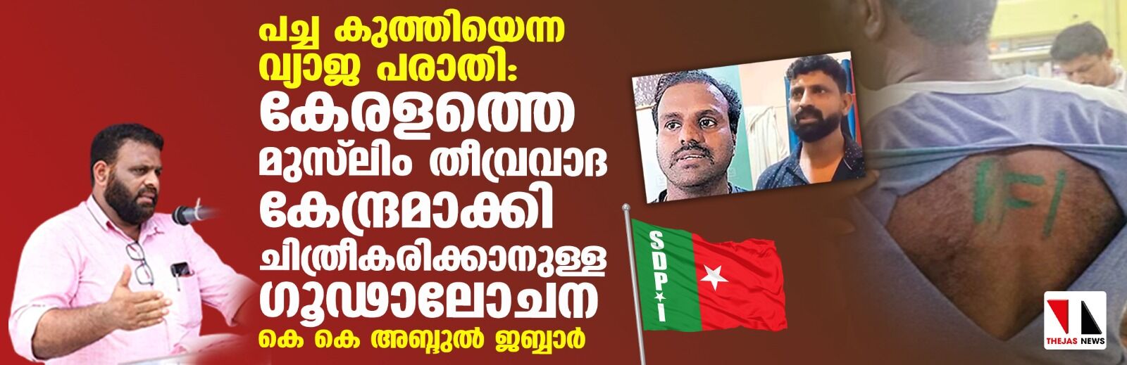 പച്ച കുത്തിയെന്ന വ്യാജ പരാതി: കേരളത്തെ മുസ് ലിം തീവ്രവാദ കേന്ദ്രമാക്കി ചിത്രീകരിക്കാനുള്ള ഗൂഢാലോചന-കെ കെ അബ്ദുല് ജബ്ബാര്
