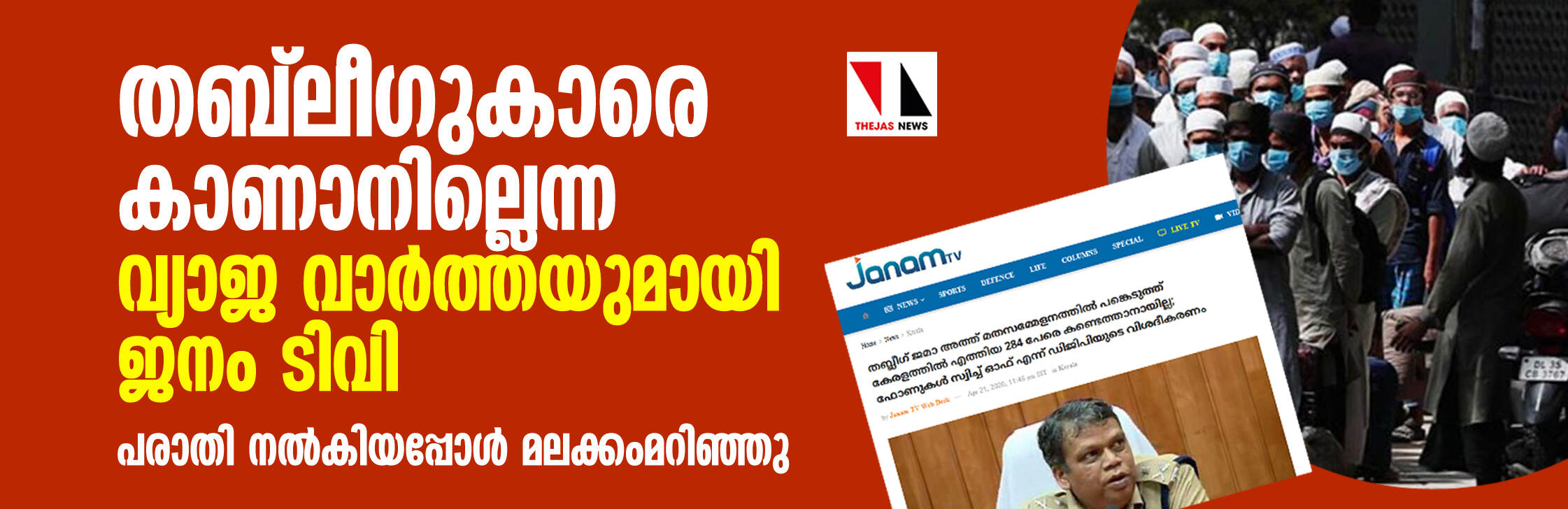 തബ്ലീഗുകാരെ കാണാനില്ലെന്ന വ്യാജ വാര്ത്തയുമായി ജനം ടിവി; പരാതി നല്കിയപ്പോള് മലക്കംമറിഞ്ഞു