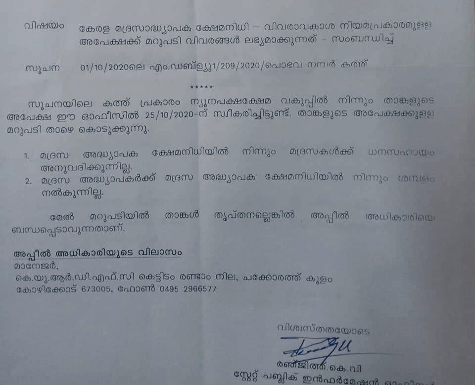സംസ്ഥാനത്തെ മദ്റസാധ്യാപകര്ക്ക് ക്ഷേമനിധിയില് നിന്ന് സര്ക്കാര് ശമ്പളവും ധനസഹായവും നല്കുന്നുവെന്ന കുപ്രചാരണം നേരത്തേ വിവരാവകാശ രേഖ പ്രകാരം പൊളിച്ചിരുന്നു. എന്സിഎച്ച്ആര്ഒ കേരള ചാപ്റ്റര് പ്രസിഡന്റ് വിളയോടി ശിവന്കുട്ടി വിവരാവകാശ നിയമപ്രകാരം നല്കിയ ചോദ്യത്തിനു മദ്റസാധ്യാപക ക്ഷേമനിധി ബോര്ഡില് നിന്നു മദ്റസാധ്യാപകര്ക്ക് ധനസഹായമോ ശമ്പളമോ നല്കുന്നില്ലെന്ന വ്യക്തമായ മറുപടി നല്കിയിരുന്നു. 2021 മാര്ച്ച് 10നു ഇക്കാര്യം തേജസ് ന്യൂസ് റിപോര്ട്ട് ചെയ്തിരുന്നു. സത്യം പുറത്തുവന്നിട്ടും ഇത്തരം കുപ്രചാരണങ്ങള് ആവര്ത്തിക്കുകയായിരുന്നു.