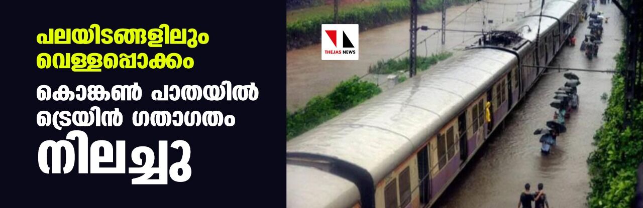 പലയിടങ്ങളിലും വെള്ളപ്പൊക്കം; കൊങ്കണ് പാതയില് ട്രെയിന് ഗതാഗതം നിലച്ചു