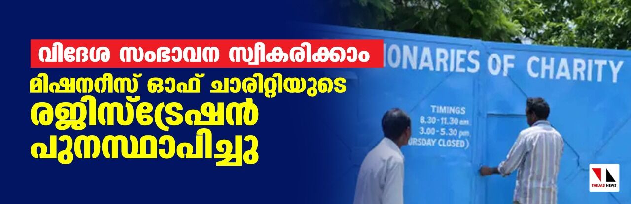 വിദേശ സംഭാവന സ്വീകരിക്കാം; മിഷനറീസ് ഓഫ് ചാരിറ്റിയുടെ രജിസ്ട്രേഷന് പുനസ്ഥാപിച്ചു