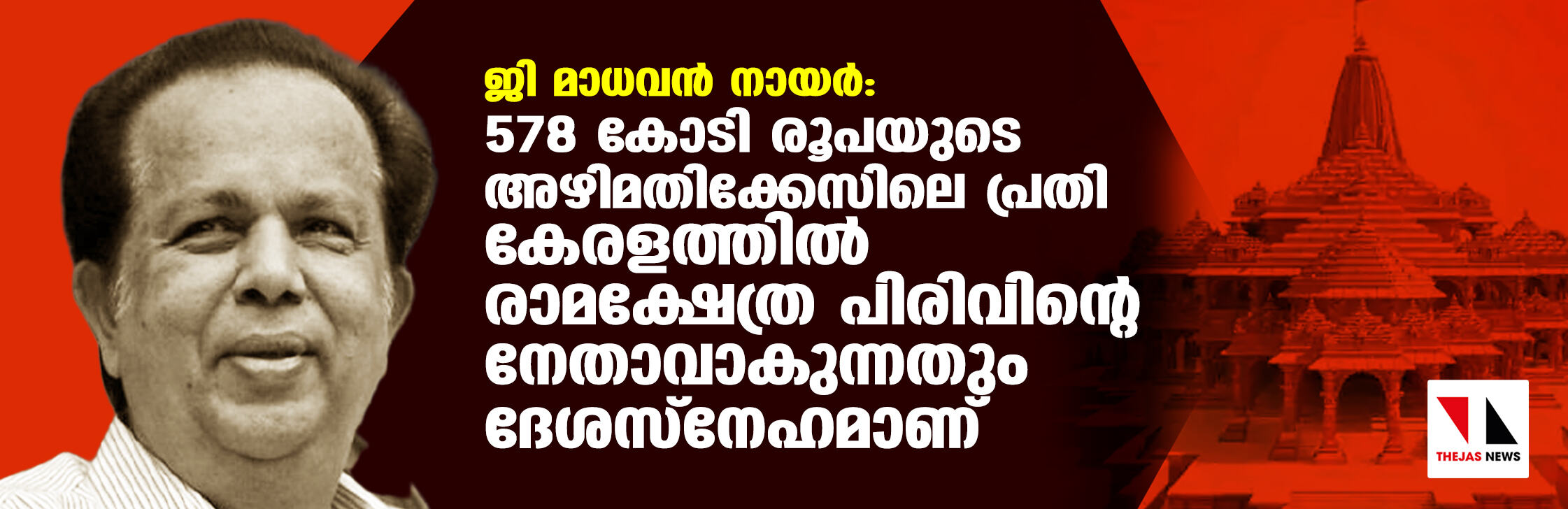 ജി മാധവന് നായര്: 578 കോടി രൂപയുടെ അഴിമതിക്കേസിലെ പ്രതി കേരളത്തില് രാമക്ഷേത്ര പിരിവിന്റെ നേതാവാകുന്നതും ദേശസ്നേഹമാണ്