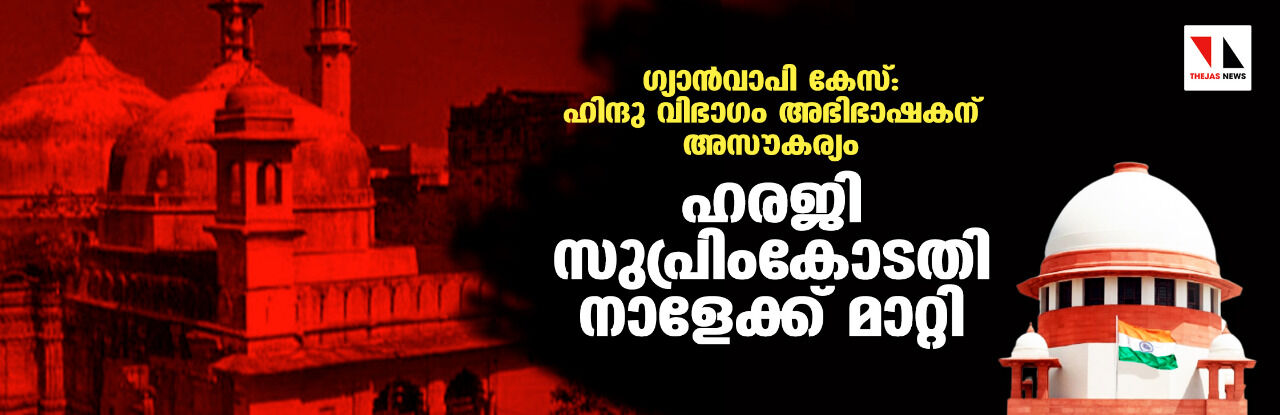 ഗ്യാന്വാപി കേസ്:ഹിന്ദു വിഭാഗം അഭിഭാഷകന് അസൗകര്യം;ഹരജി സുപ്രിംകോടതി നാളേക്ക് മാറ്റി