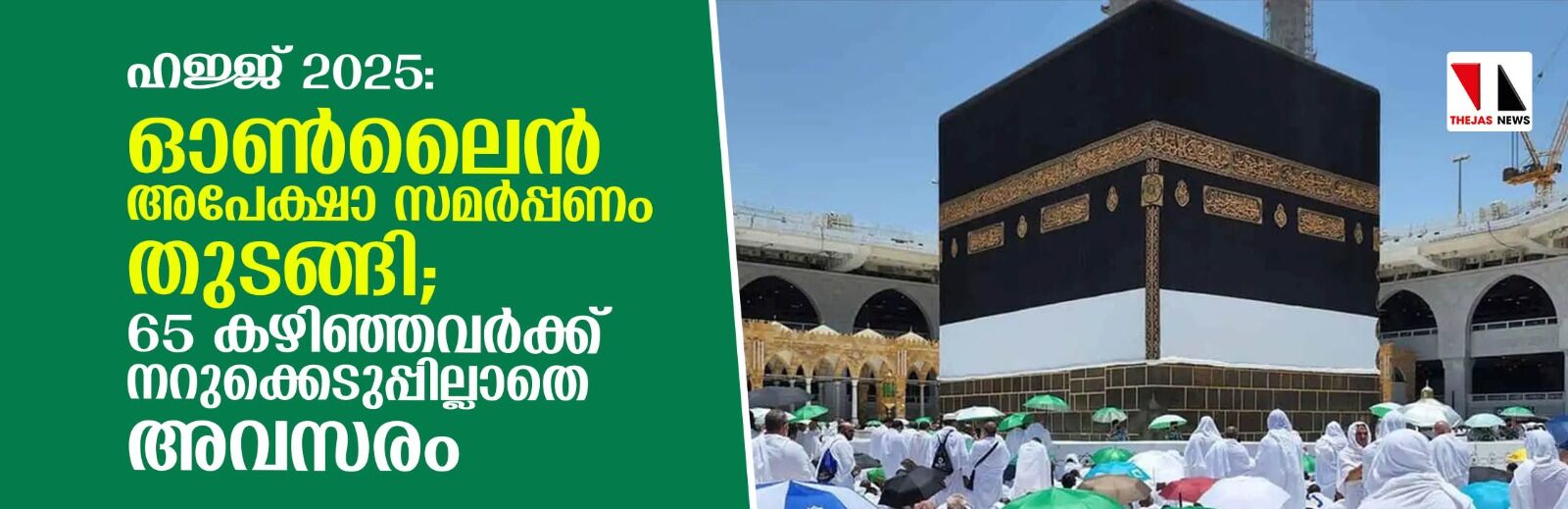 ഹജ്ജ്-2025: ഓണ്ലൈന് അപേക്ഷാ സമര്പ്പണം തുടങ്ങി; 65 കഴിഞ്ഞവര്ക്ക് നറുക്കെടുപ്പില്ലാതെ അവസരം