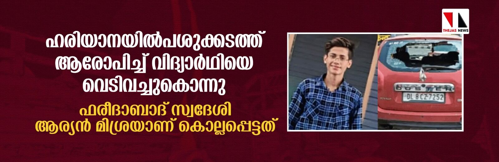 ഹരിയാനയില് പശുക്കടത്ത് ആരോപിച്ച് വിദ്യാര്ഥിയെ വെടിവച്ചുകൊന്നു
